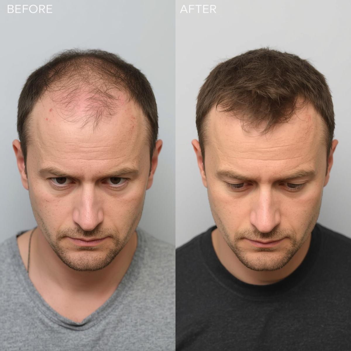 Diese Vorher-Nachher-Bilder sind das exklusive Eigentum von MannHair und wurden von echten Kunden nach konsequenter Anwendung unserer Behandlung eingereicht. Eine unbefugte Nutzung oder Weitergabe ist strengstens untersagt.